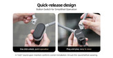 استفاده آسان: دکمهای هوشمند برای باز و بسته شدن راحتتر قسمت گردنی، که قرار دادن هولدر را دور گردن بسیار ساده میکند.