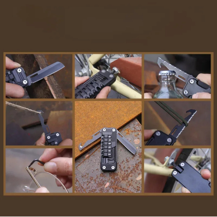 این مولتیتول هوشمند شامل یه چاقوی تیز 🔪، ارهای کارآمد 🪵، سیمبر ✂️، دربازکن بطری 🍾، و مهمتر از همه، 6 سری پیچگوشتی پرکاربرد (شامل دوسو و چهارسو) به همراه 3 ابزار میکرو مثل آچار آلن و پین سیمکارت میشه. 🤯 دیگه لازم نیست برای هر کاری دنبال یه ابزار جداگانه بگردید!