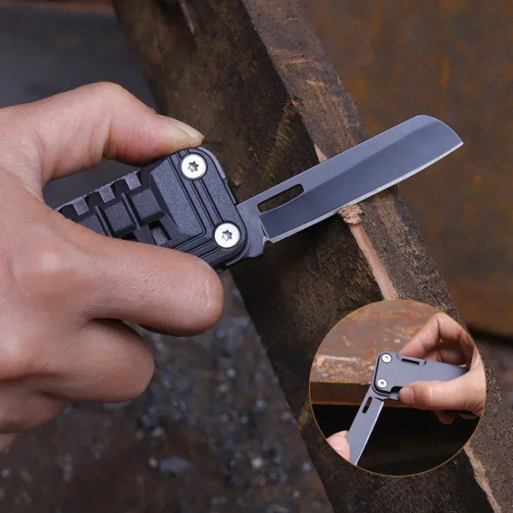 ساخته شده از فولاد ضد زنگ 420 با کیفیت بالا، این ابزار نه تنها بسیار مقاوم و بادوامه 💪، بلکه به لطف طراحی قفلشونده هوشمندش، وقتی از چاقو یا اره استفاده میکنید، کاملاً ایمن و مطمئن هستید. 🔒