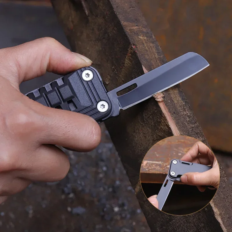 ساخته شده از فولاد ضد زنگ 420 با کیفیت بالا، این ابزار نه تنها بسیار مقاوم و بادوامه 💪، بلکه به لطف طراحی قفلشونده هوشمندش، وقتی از چاقو یا اره استفاده میکنید، کاملاً ایمن و مطمئن هستید. 🔒